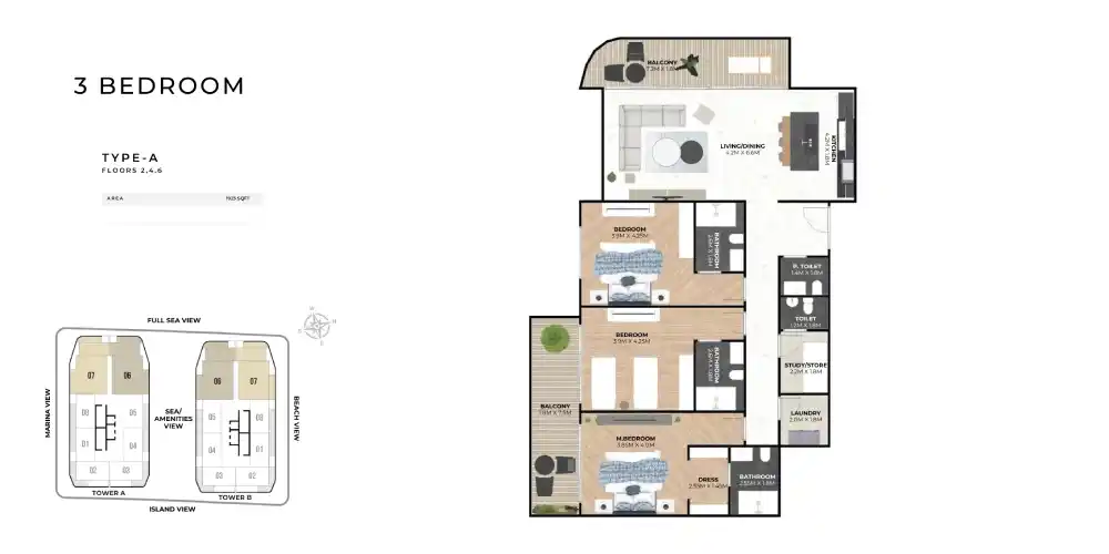 Thoughtful architecture frames expansive terraces, maximizing light, views, and coastal serenity. Hatimi Residences exist to harmonize waterfront luxury, wellbeing, and enduring lifestyle.