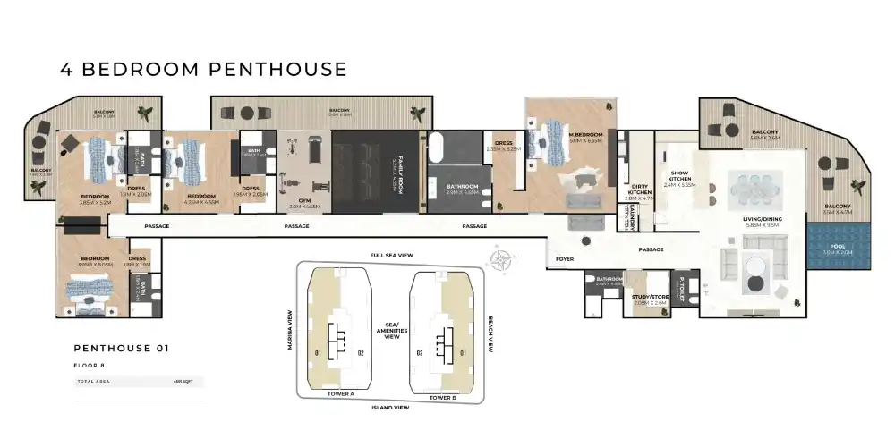 Set on Dubai Islands, moments from the marina, promenade, beach, and golf course, offering effortless seaview island living every day.