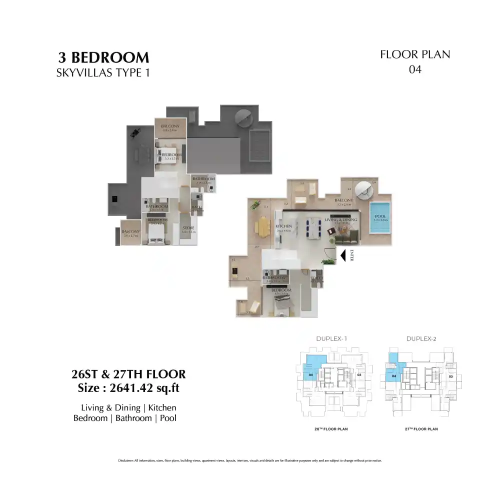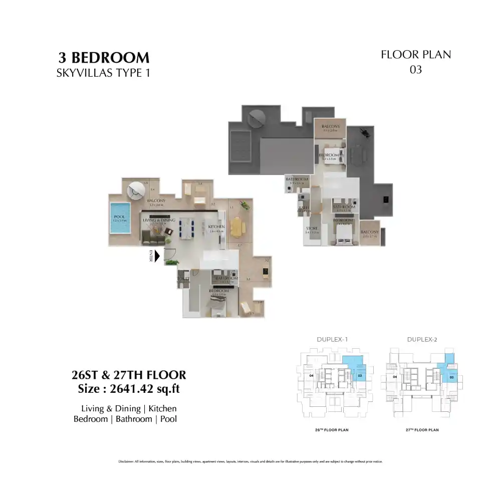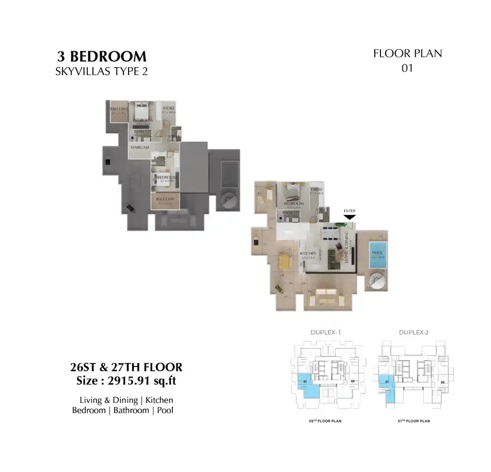 | 3 Bedroom Skyvilla | 2,640-2,915 sq. ft. |